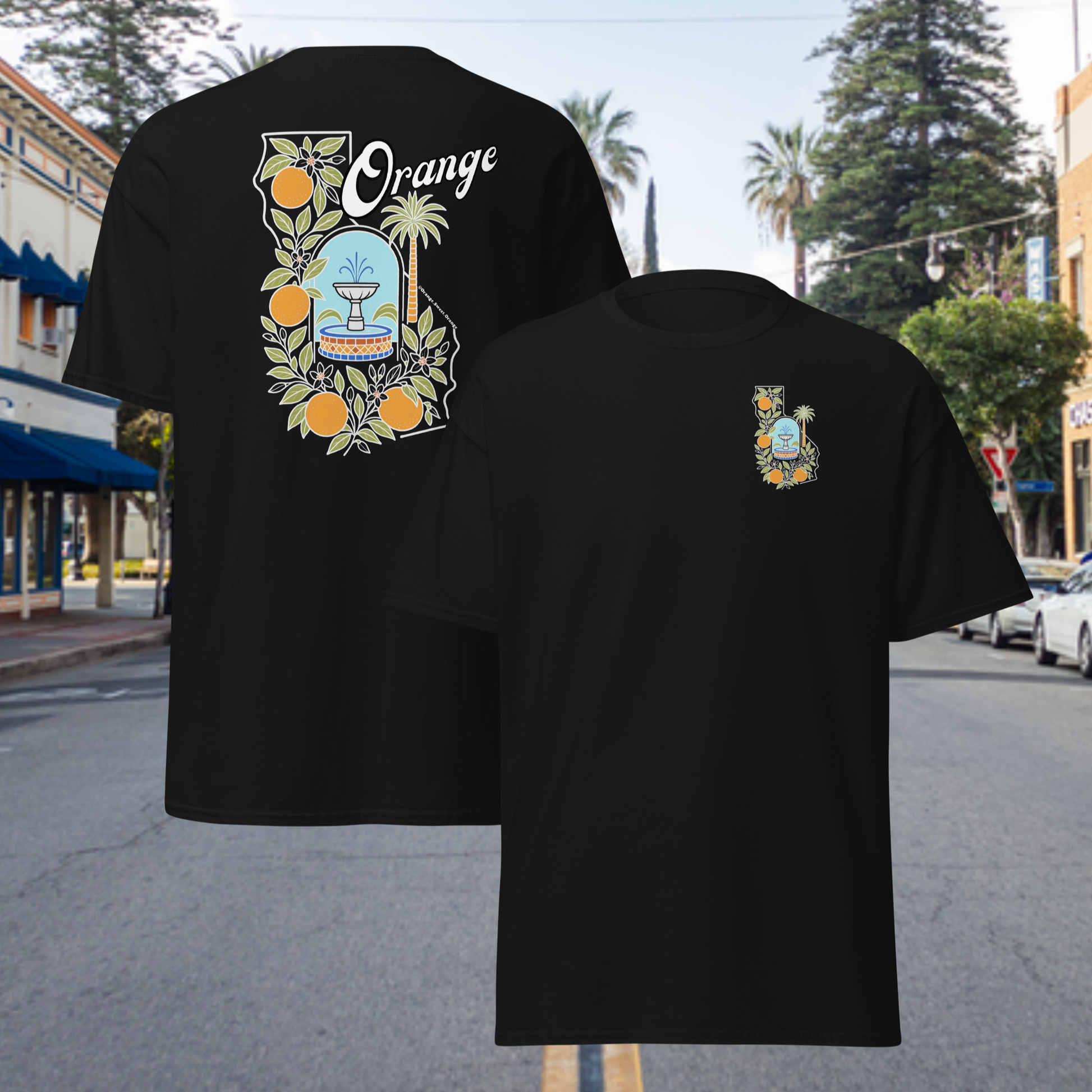 "Welcome to Orange" Fountain Crash Snow Washed Oversized Cotton T-Shirt