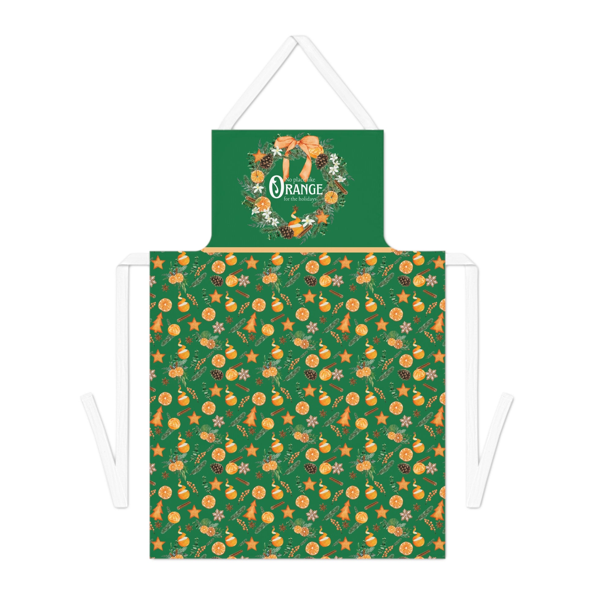 Oranges, cinnamon, Christmas cookies and more decorate this Orange themed Christmas apron. Great chefs require great style - and this personalized apron delivers. Featuring snow-white loop & ties, this apron is made with 100% pre-shrunk polyester canvas - an ideal material for keeping splashes and stains at bay while you create tasty meals in your home in Orange.