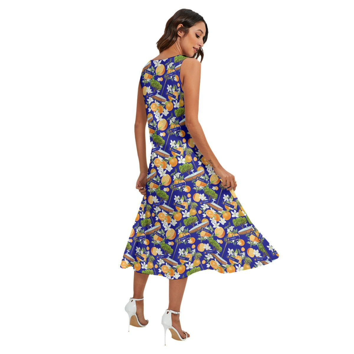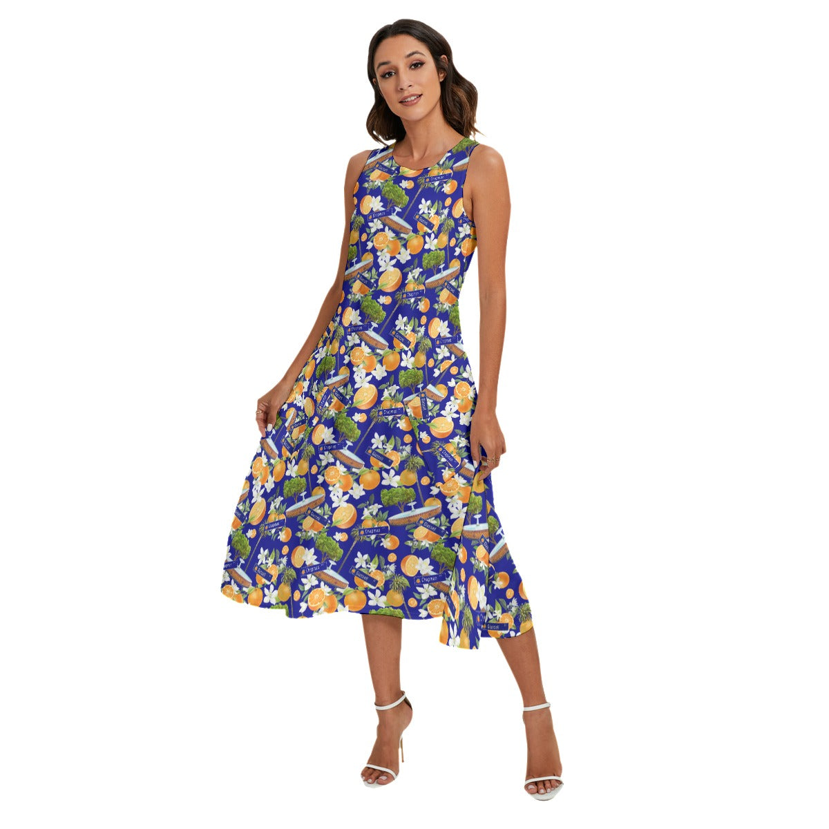 The perfect summer dress for any lady in Old Towne Orange! Sleeveless long skirt, classic round neck, two large external diagonal pockets on the side, allowing you to comfortably go to Street Fair, dinner, antiquing, or just a chat with a friend in the plaza circle!