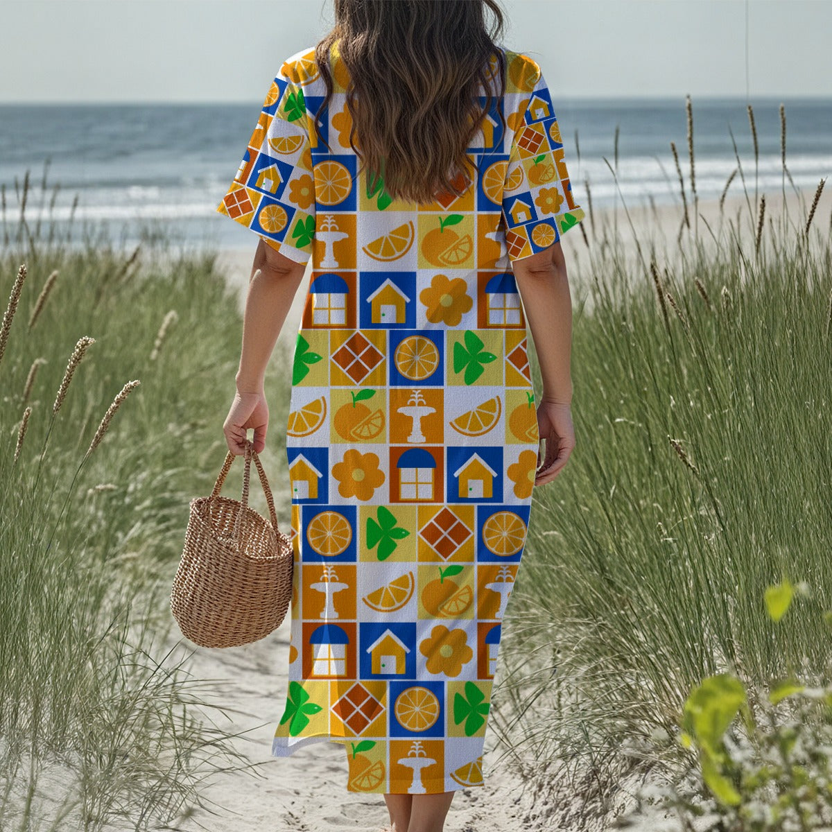 Retro Old Towne Orange Women's Loose V-Neck Summer Dress