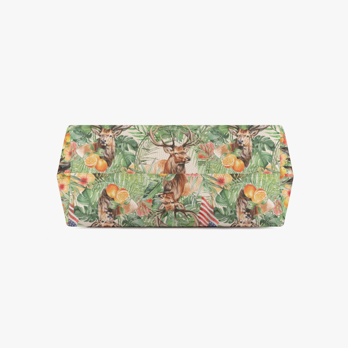 Carry heritage and style wherever you go with this modern tote bag featuring the Elks Lodge 1475 tribute pattern. Adorned with majestic elk, bright citrus, and lush florals, it’s a bold design that reflects both tradition and individuality.