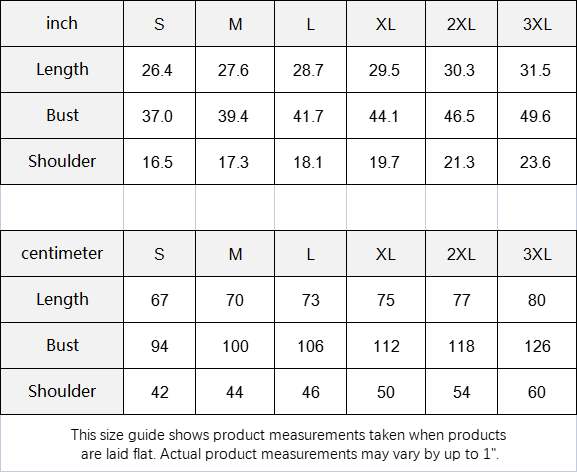 Centimeter | S | M | L | XL | 2XL | 3XL |