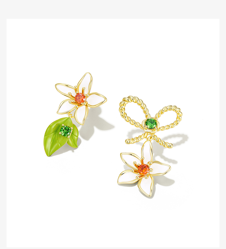 Pieces are made of alloy and 18k gold plating and artificial gemstones. They are adorable and complete with oranges, citrus and flowers!